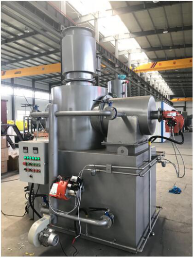 5、废气处理方式:高温+高温喷风涡流燃烧+二次燃烧+旋风集尘器+烟囱。
