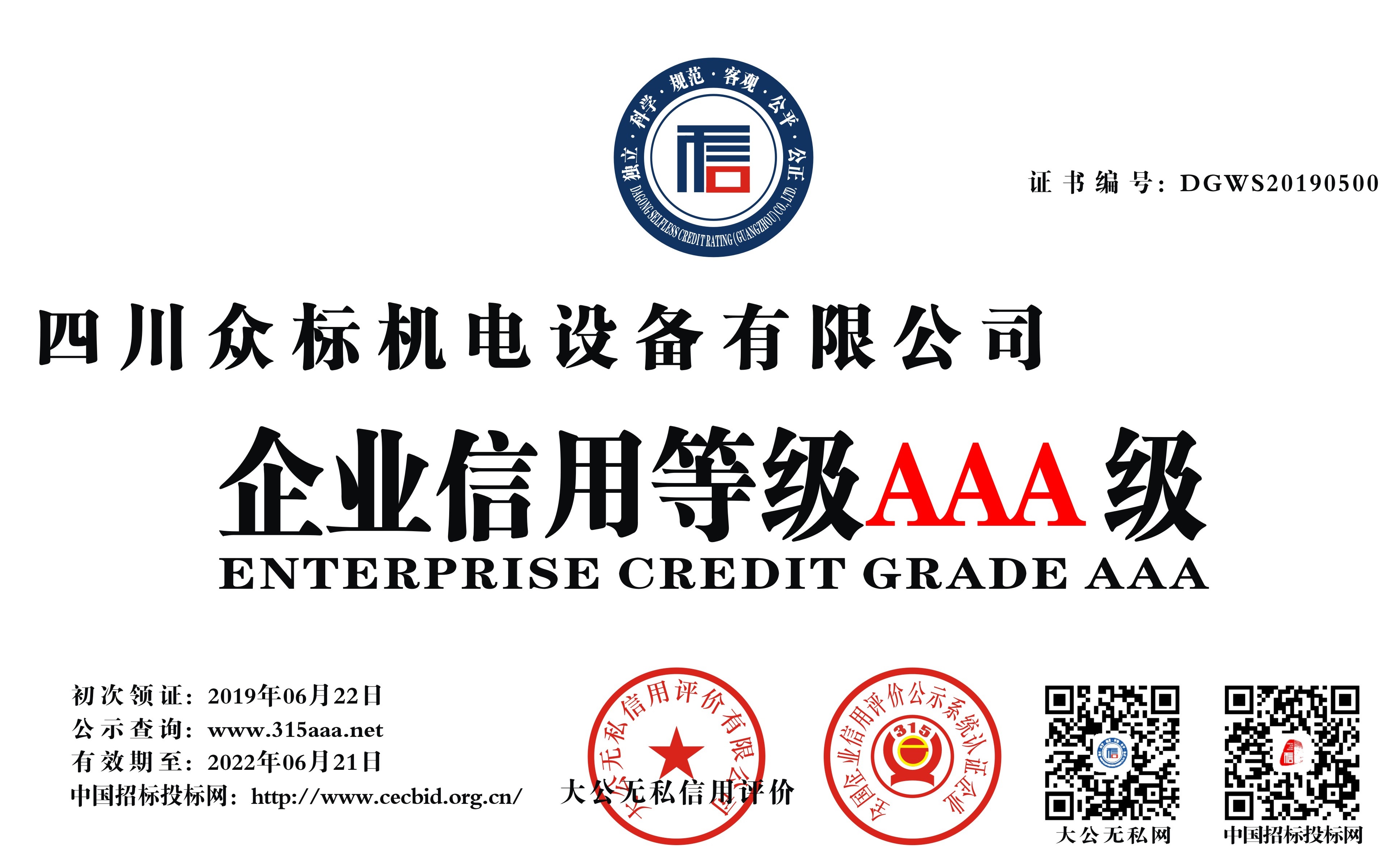 AAA级企业信用等级