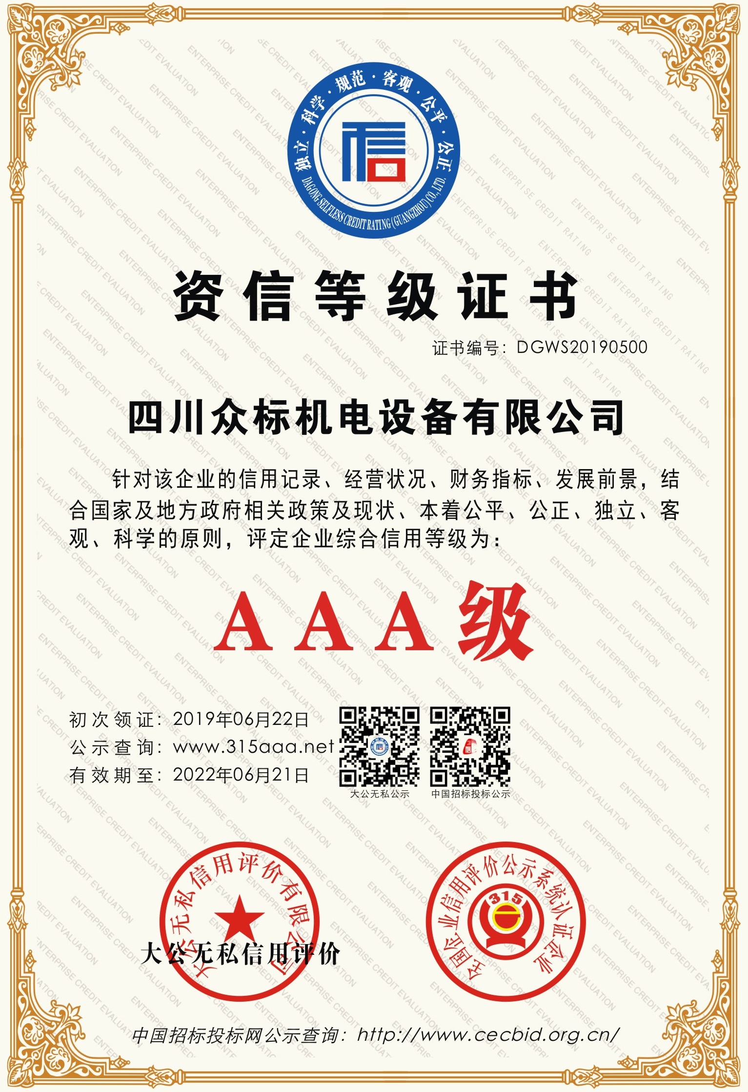 AAA级资信等级